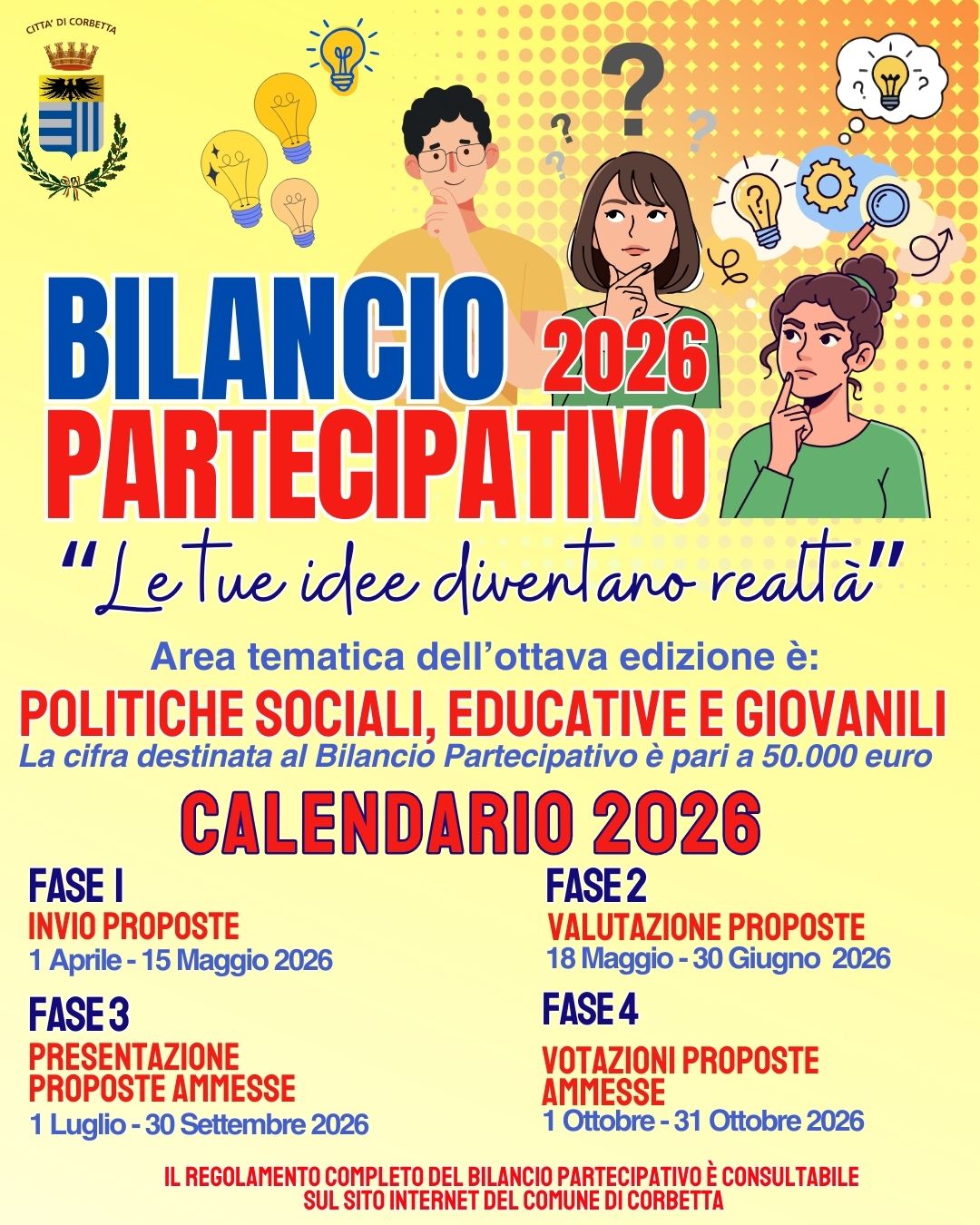 L'Amministrazione Comunale propone la possibilità a cittadini e associazioni di partecipare, con uno o più progetti, al Bilancio Partecipativo anno 2026.